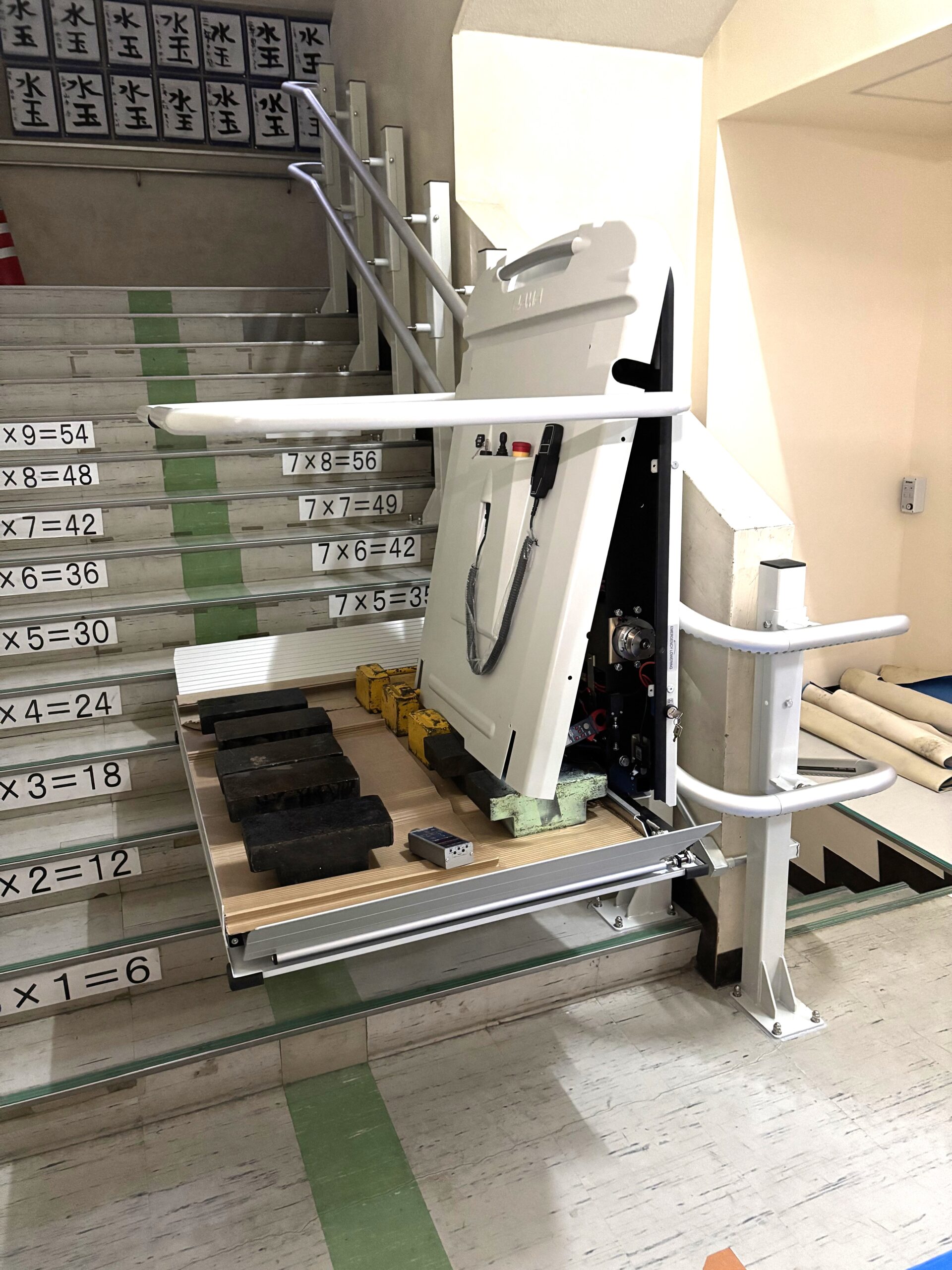 京都府の小学校へ車いす用階段昇降機据付工事に行ってきました!